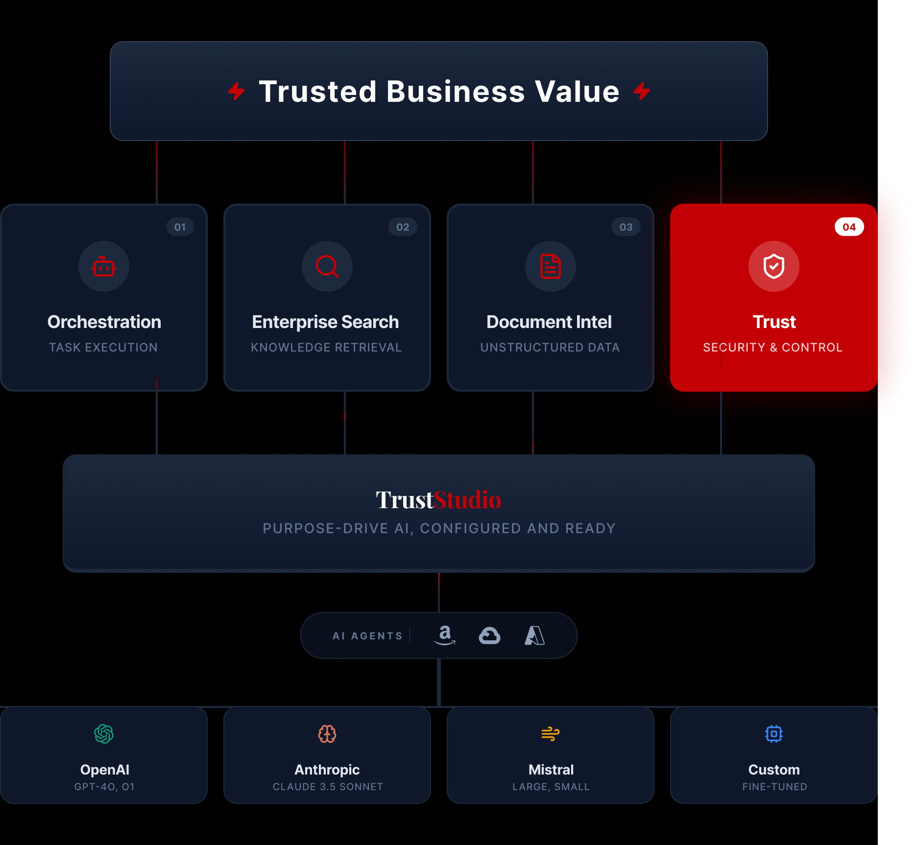 Join leading enterprises who trust TrustStudio to power their mission-critical AI Orchestration. Get started for free or talk to our team about enterprise solutions.